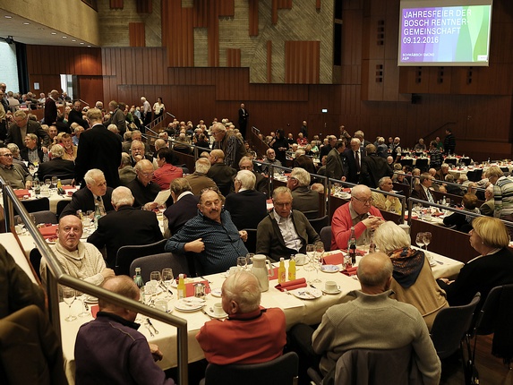 Im Stadtgarten fand die traditionelle Jahresabschlussfeier der Bosch Rentnergemeinschaft Schwäbisch Gmünd statt. Rund 800 Rentnerinnen und Rentner waren der Einladung der Geschäftsführung der Robert Bosch Automotive Steering GmbH gefolgt, um mit ehemaligen Kollegen das Jahr Revue passieren zu lassen .