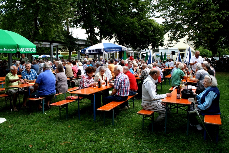 Die zweite Überraschung war die Ansage, dass die Verzehrbons wieder erhöht werden konnten, was natürlich mit viel Applaus belohnt wurde. Zur Unterhaltung spielte die wunderbare Bosch-AS Big Band unter der musikalischen Leitung von Peter Abele. Mit Ihrer tollen Musik haben sie entscheidend zum Gelingen beigetragen, denn was wäre ein Gartenfest ohne Livemusik. Zum Gartenfest gehört natürlich auch ein zünftiges Vesper. Bei laufend warmen Salzkuchen, den berühmten LKW´S mit ABS und diversen Getränken und natürlich wie beim Stadtfest ohne Schnaps, hatten die Bosch-Rentnerinnen und Rentner einen herrlichen Nachmittag im Kreise ihrer früheren Kolleginnen und Kollegen verbracht und freuen sich auch schon auf das nächste Treffen: Die Wanderung am Freitag den 16. September 2016.